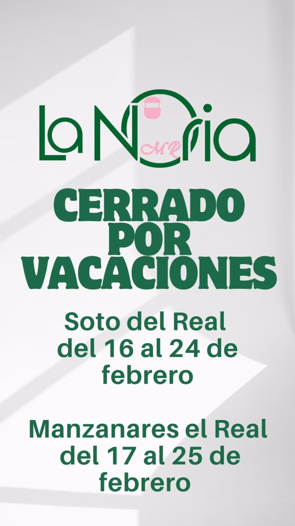 Informamos a nuestros clientes de que el equipo de La Noria se va de vacaciones. Por este motivo, el calendario de reservas no estará operativo en las siguientes fechas: